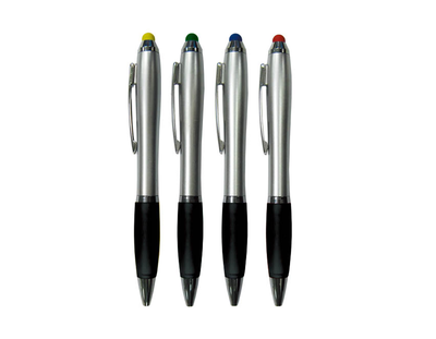 銀灰筆身搭配彩色筆頭,多工觸控設計,專業實用,展現品牌科技感與高效形象。